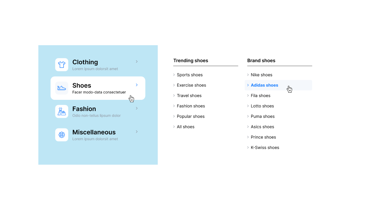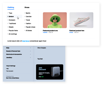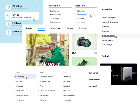 We created a variety of mega menu styles and layouts to extend your selection and perfectly fit your brand or business website.