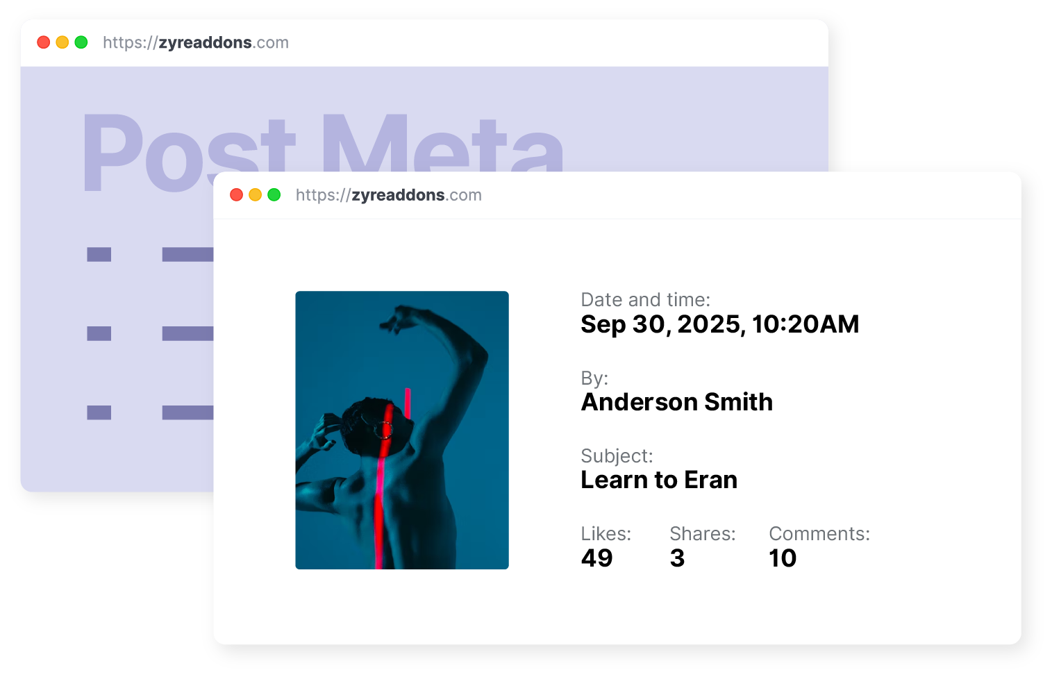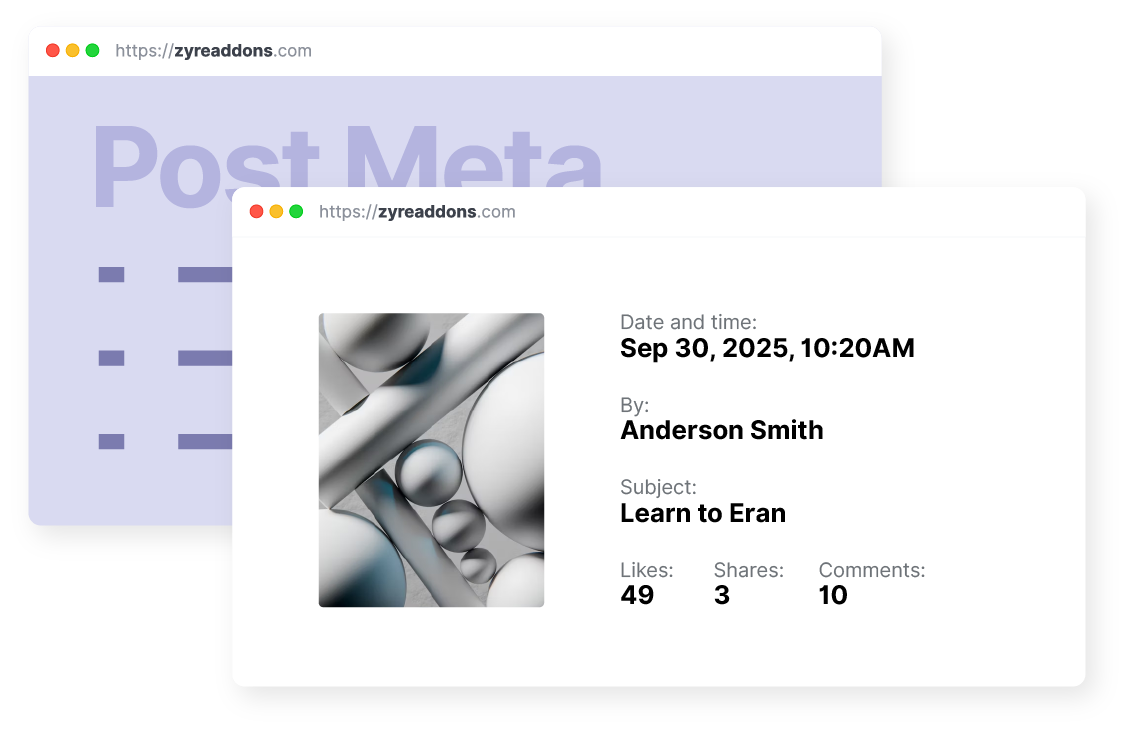Well-crafted post meta improves readability and SEO. Display author, date, category, and reading time to build trust and help visitors navigate content. Optimized meta increases engagement while keeping your layout clean and professional.
