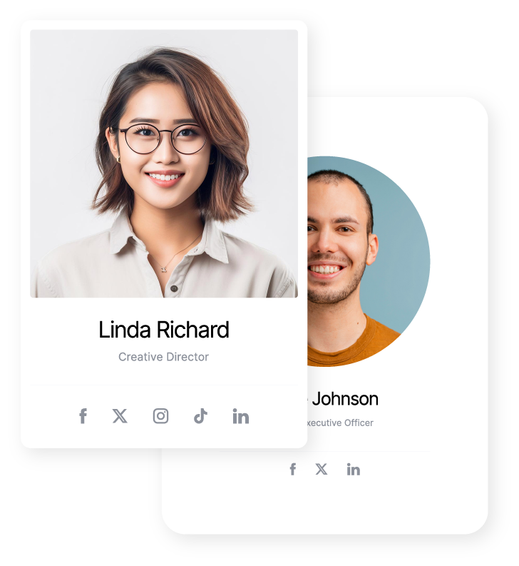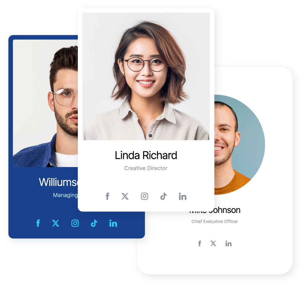 Option to display either a photo or avatar for each team member, depending on the design preference.