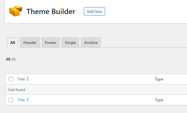 Log in to your WordPress admin panel and navigate to Dashboard → Zyre Addons → Theme Builder to open the Theme Builder management page.