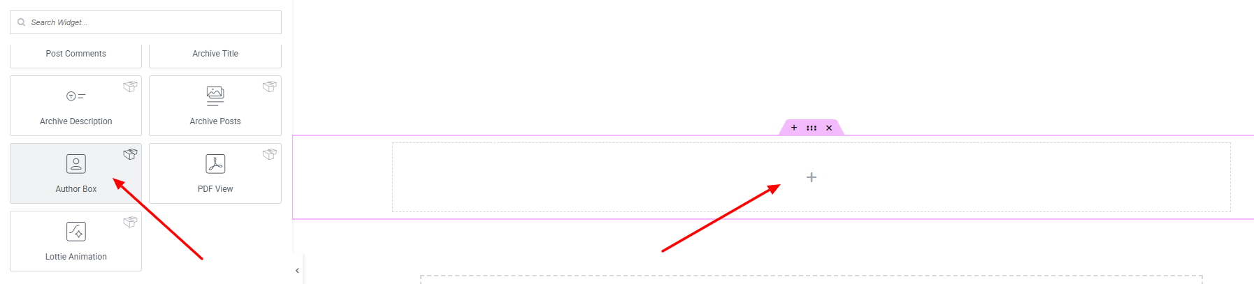 From the left panel, search or choose the Author Box Widget of Zyre Addon and simply drag it into your desired section.