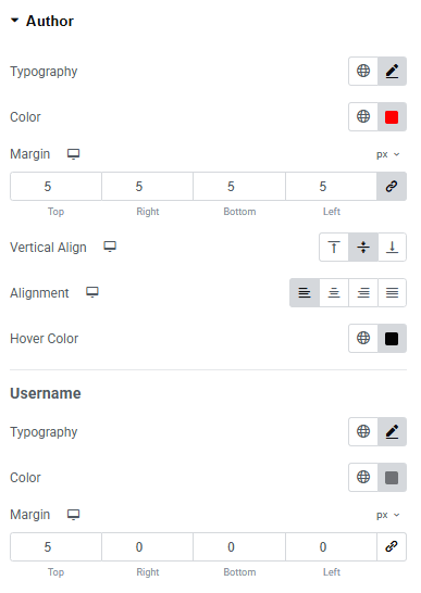 You’ll find the same design options for the Username part as in the Author Section— giving you full freedom to style it just the way you imagine.