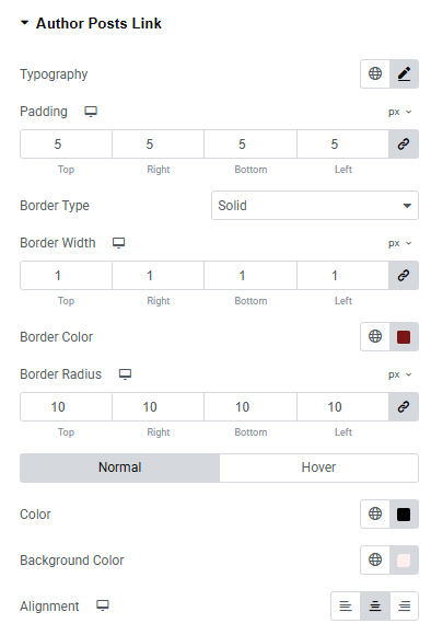 • Background Color : Set post link background color both for normal and hover state. Explore full background settings here.