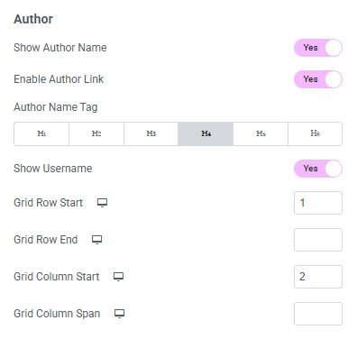 • Author Name Tag : Select the HTML tag (H1–H6).