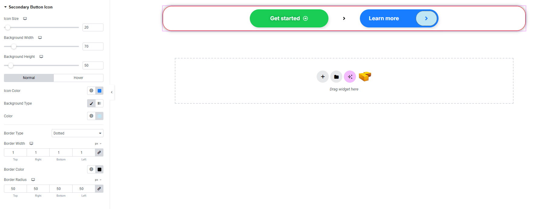- Background Color : Choose classic or gradient background for normal and hover states. Explore full background settings here.