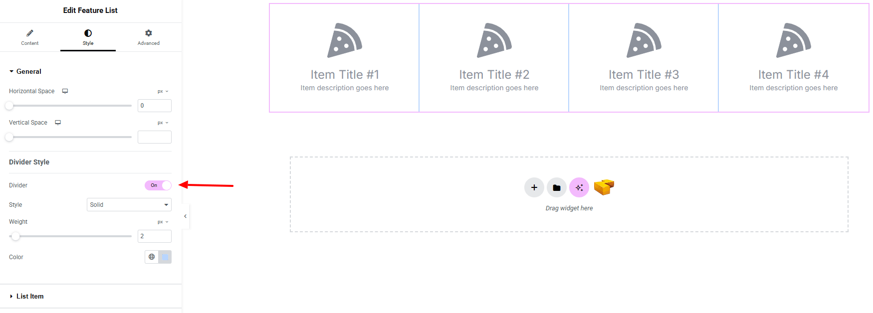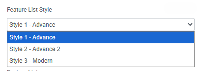 - Feature List Style : You can choose a predefined style from here
