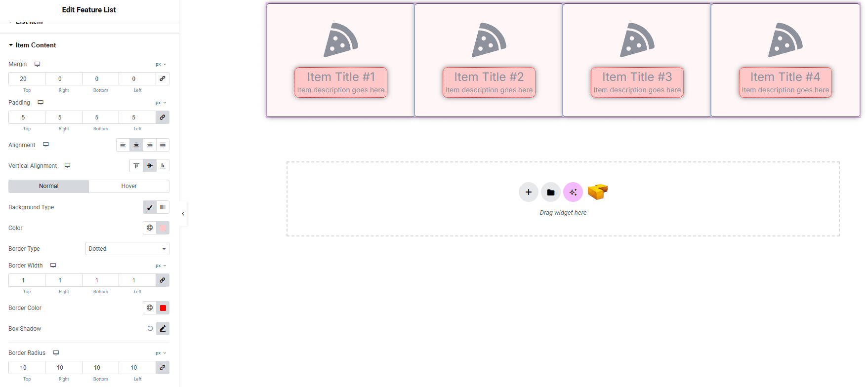 - Border Radius : Round the corners of the item content container.