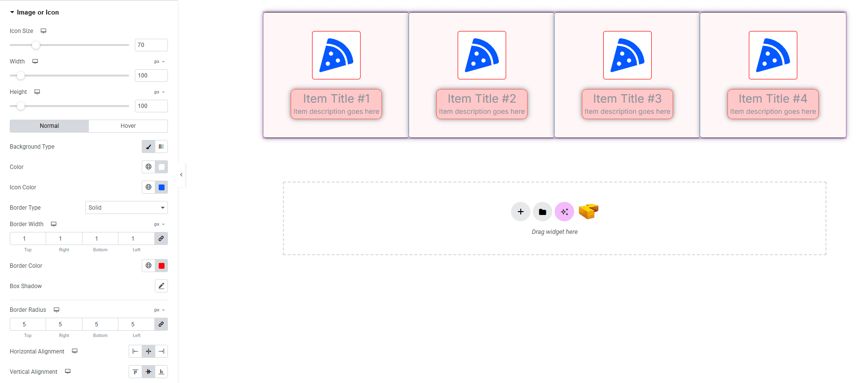 - Width & Height : Define the dimensions of the image or icon container.