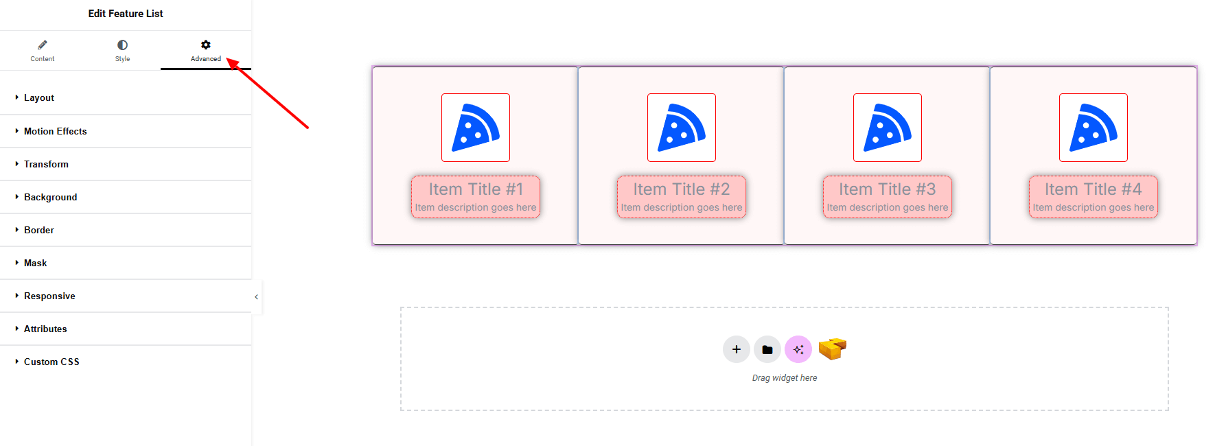If you want to customize the layout, backgrounds, or make your design more engaging, head over to the Advanced section. The Advanced panel is a default Elementor feature. Check out this document to learn more about its features.