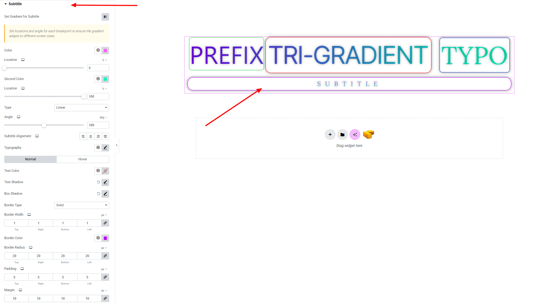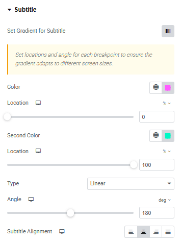 • Set Gradient for Subtitle : Set gradient colors with type, angle.