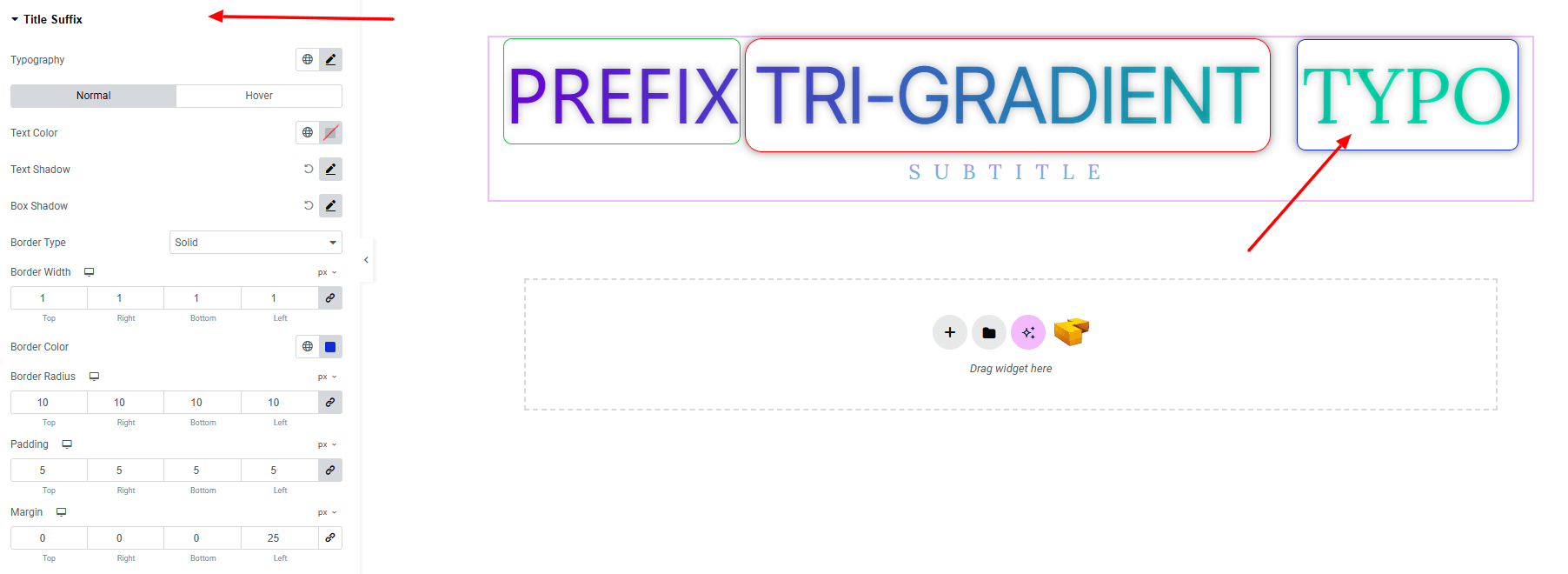You’ll find the same customization options available for the Title Suffix as well, giving you full control to design it just like the Title Prefix.