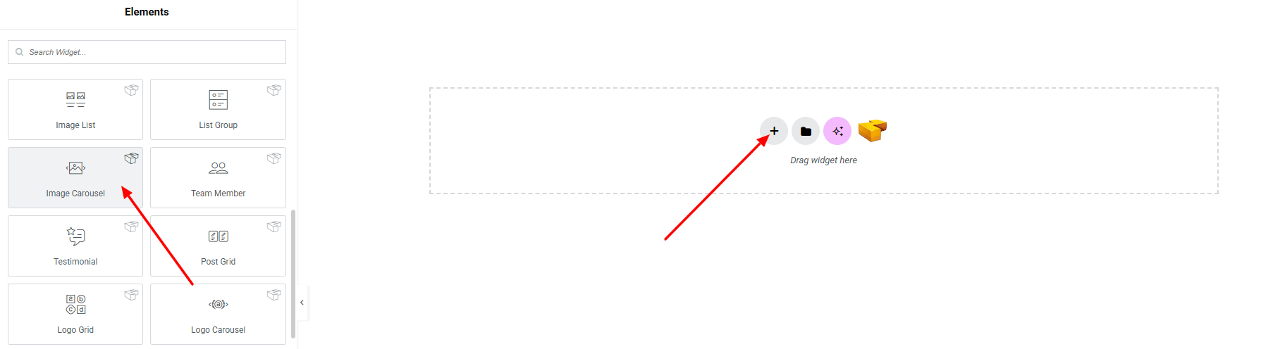 From the left panel, search or choose the Image Carousel of Zyre Addon and simply drag it into your desired section.