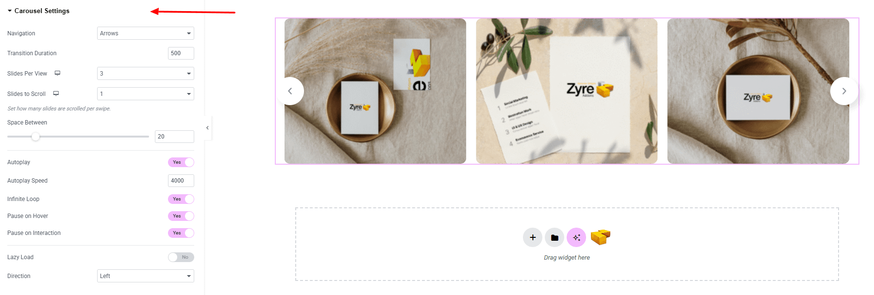 Step-by-Step Tutorial on Using the Image Carousel Widget of Zyre Addon.
