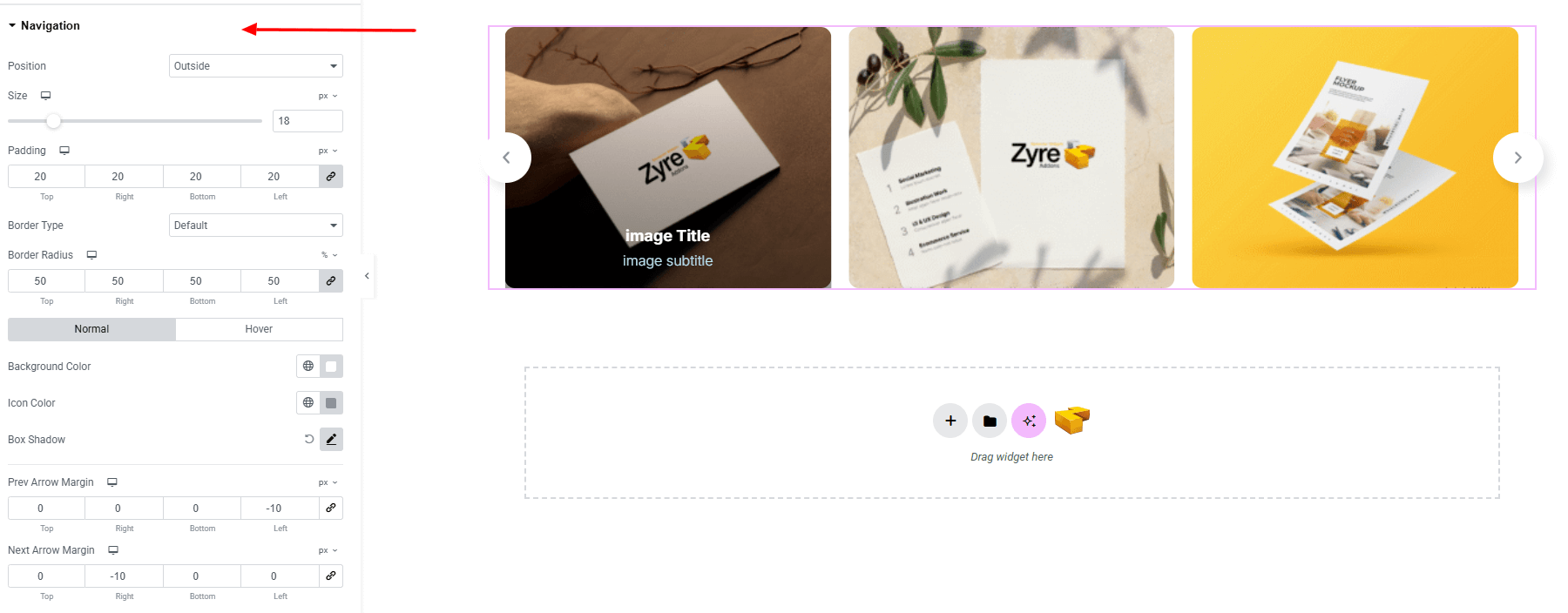 With Zyre Addon’s Image Carousel Widget, you can showcase multiple images in a sleek, interactive slider. From product galleries to portfolio showcases, this widget lets you control navigation, autoplay, and styling—turning simple images into an engaging scrolling experience.
