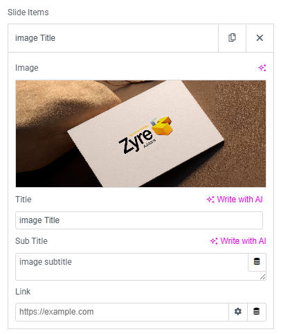 With Zyre Addon’s Image Carousel Widget, you can showcase multiple images in a sleek, interactive slider. From product galleries to portfolio showcases, this widget lets you control navigation, autoplay, and styling—turning simple images into an engaging scrolling experience.