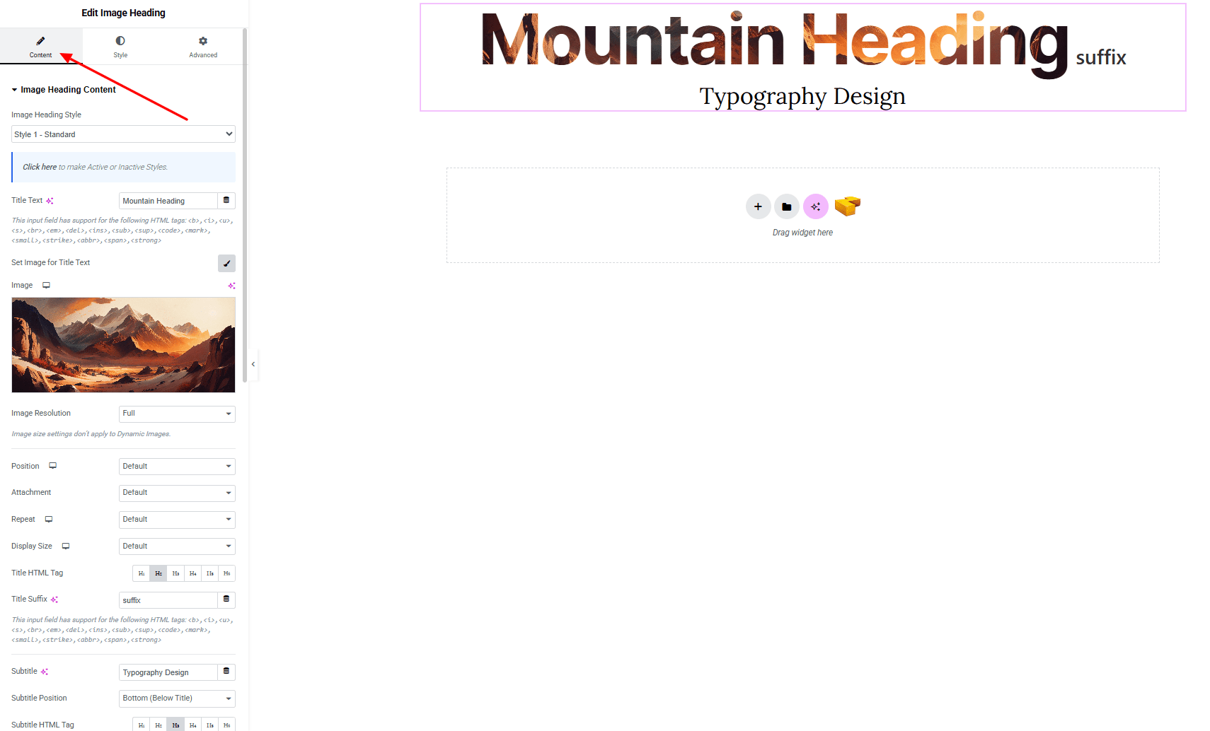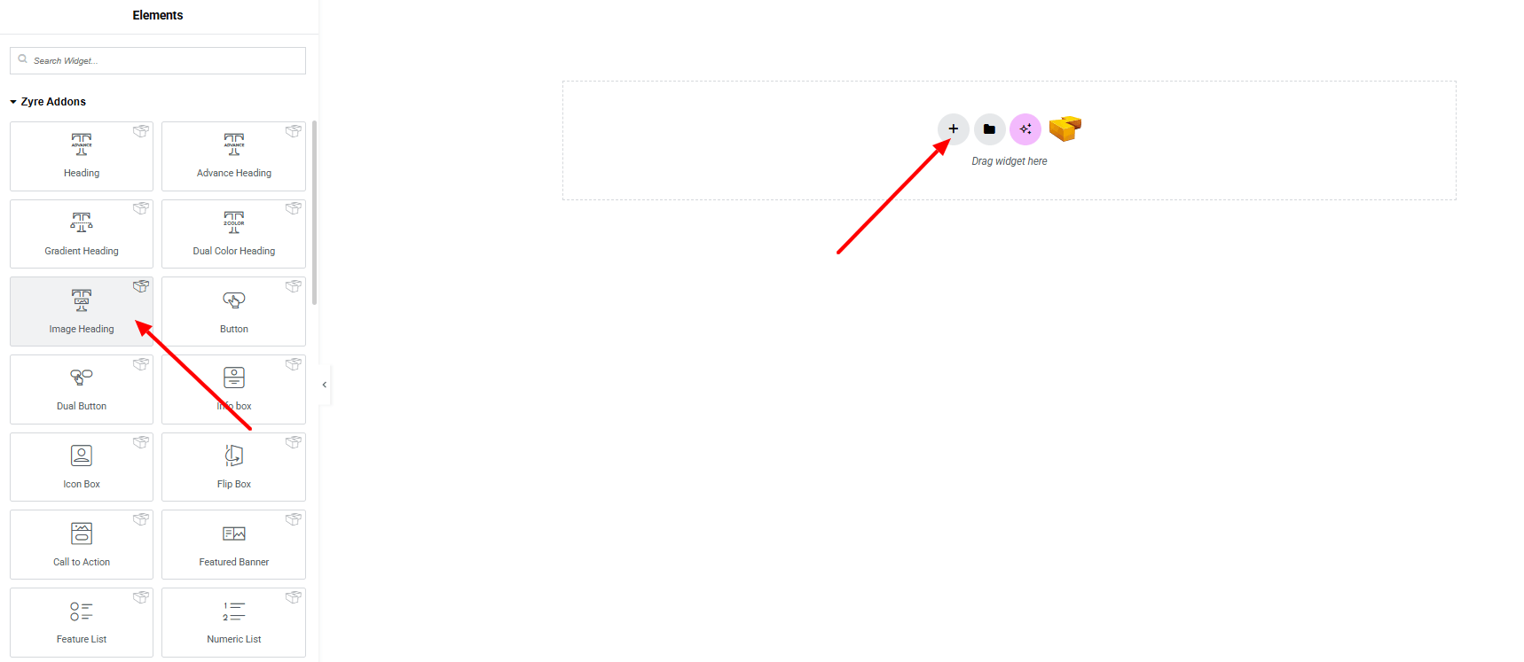 From the left panel, search or choose the Image Heading Widget of Zyre Addon and simply drag it into your desired section.