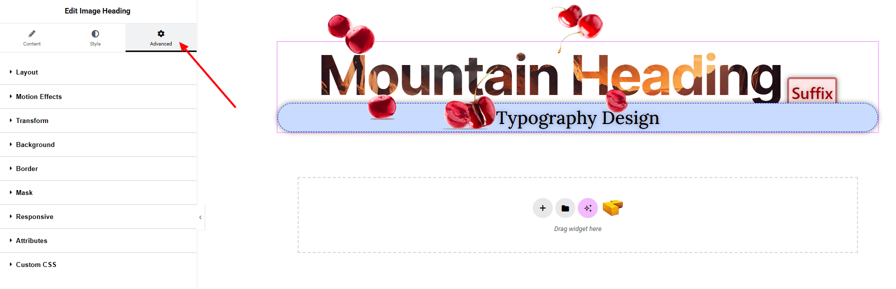 If you want to customize the layout, backgrounds, or make your design more engaging, head over to the Advanced section. The Advanced panel is a default Elementor feature. Check out this document to learn more about its features.