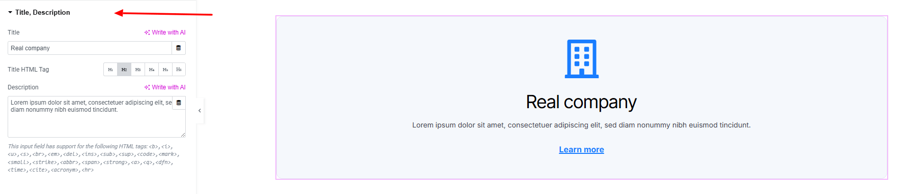 You’ll find the same design options for the Description as in the Title — giving you full freedom to style it just the way you imagine.
