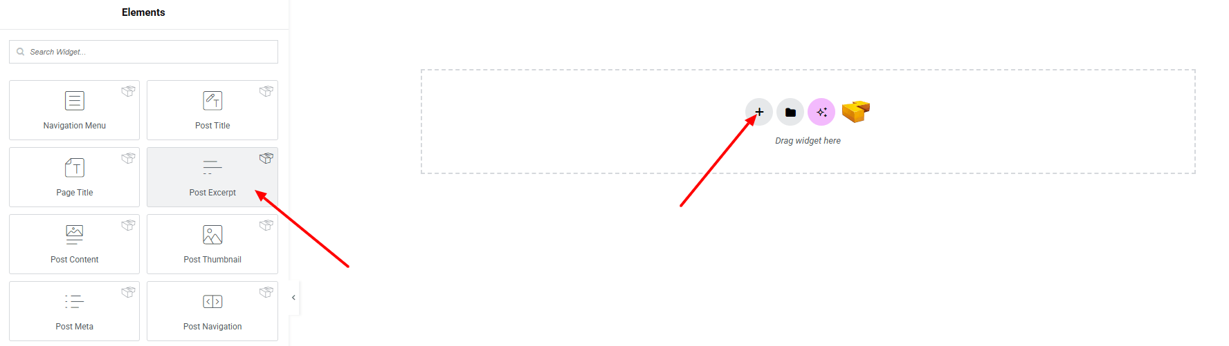 From the left panel, search or choose the Post Excerpt Widget of Zyre Addon and simply drag it into your desired section.