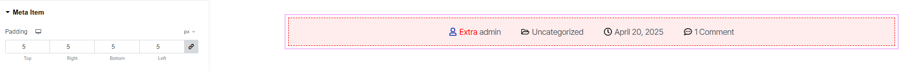 - Icon Distance : Control the spacing between the icon and the meta element text.