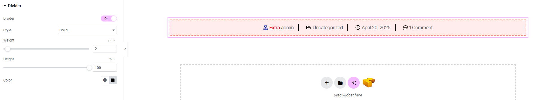 - Divider : Toggle to enable or disable an icon with the meta element.