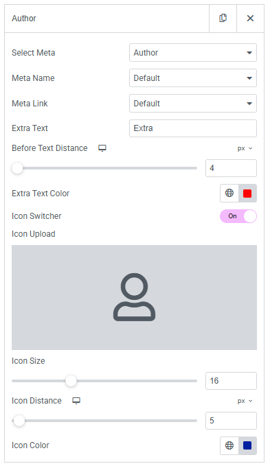 - Icon Distance : Control the spacing between the icon and the meta element text.