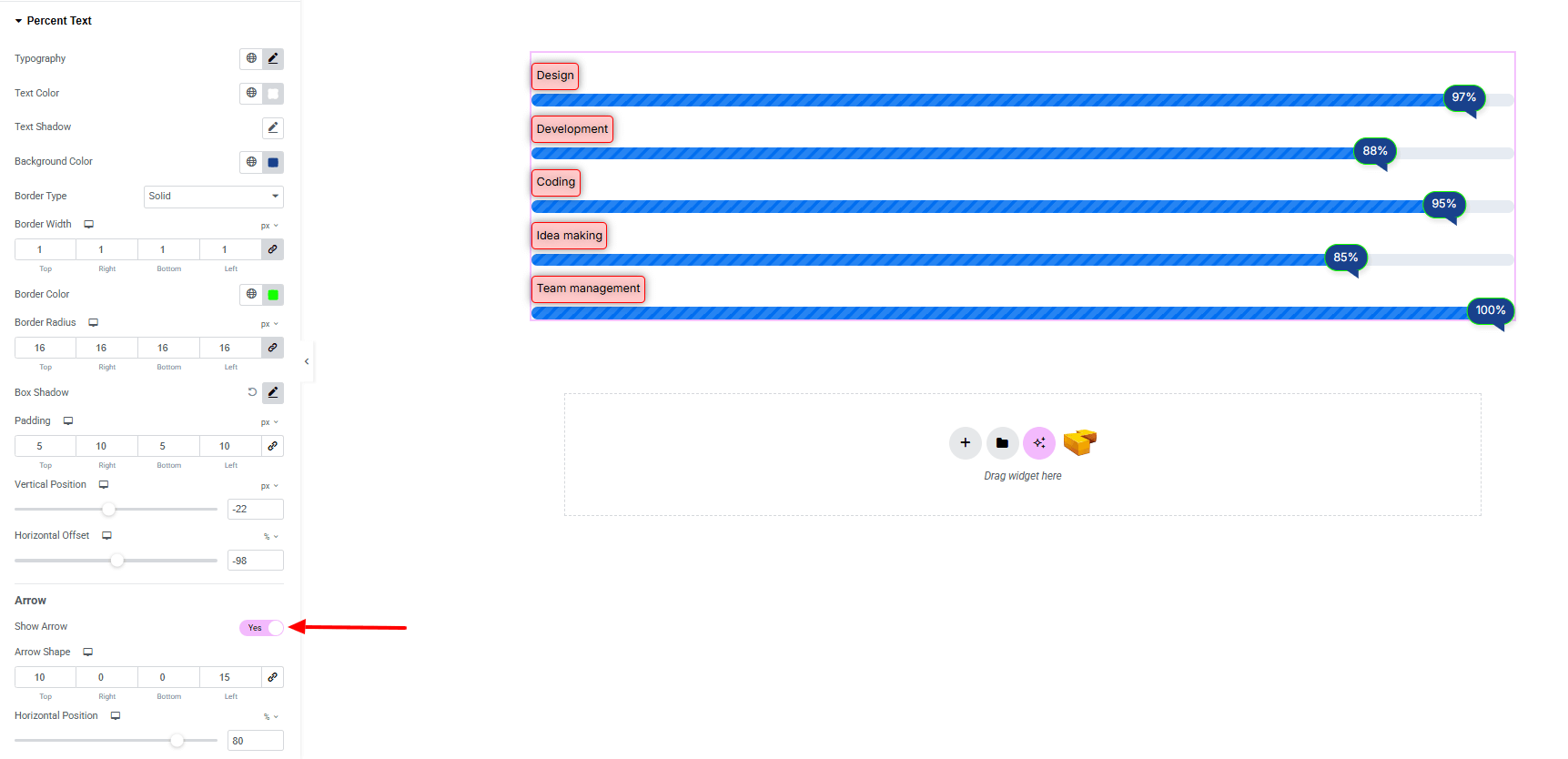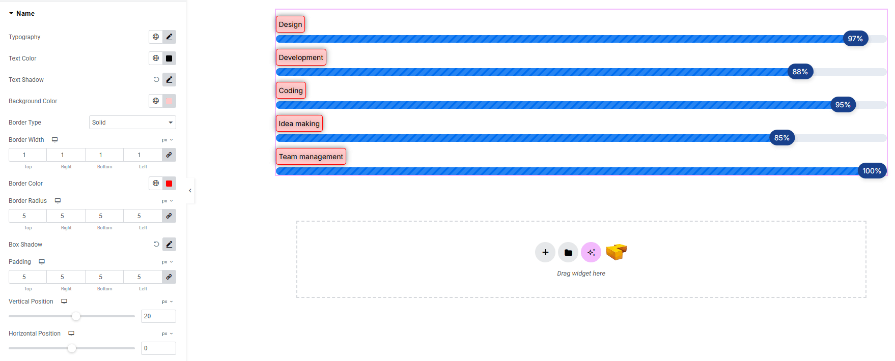 You’ll find the same design options for the Percent Text as in the Name — giving you full freedom to style it just the way you imagine.