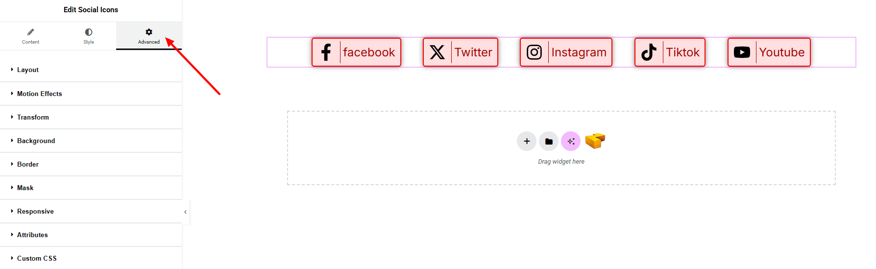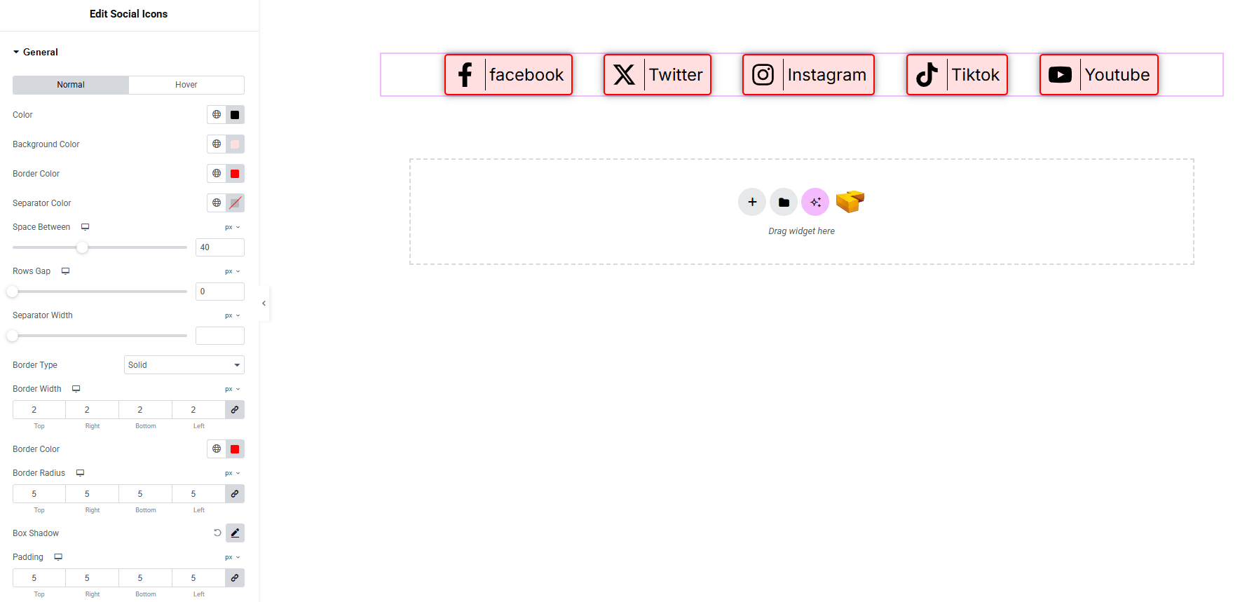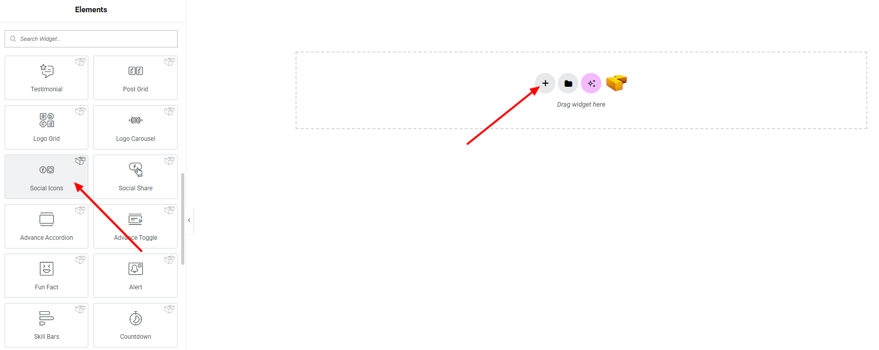 From the left panel, search or choose the Social Icon of Zyre Addon and simply drag it into your desired section.