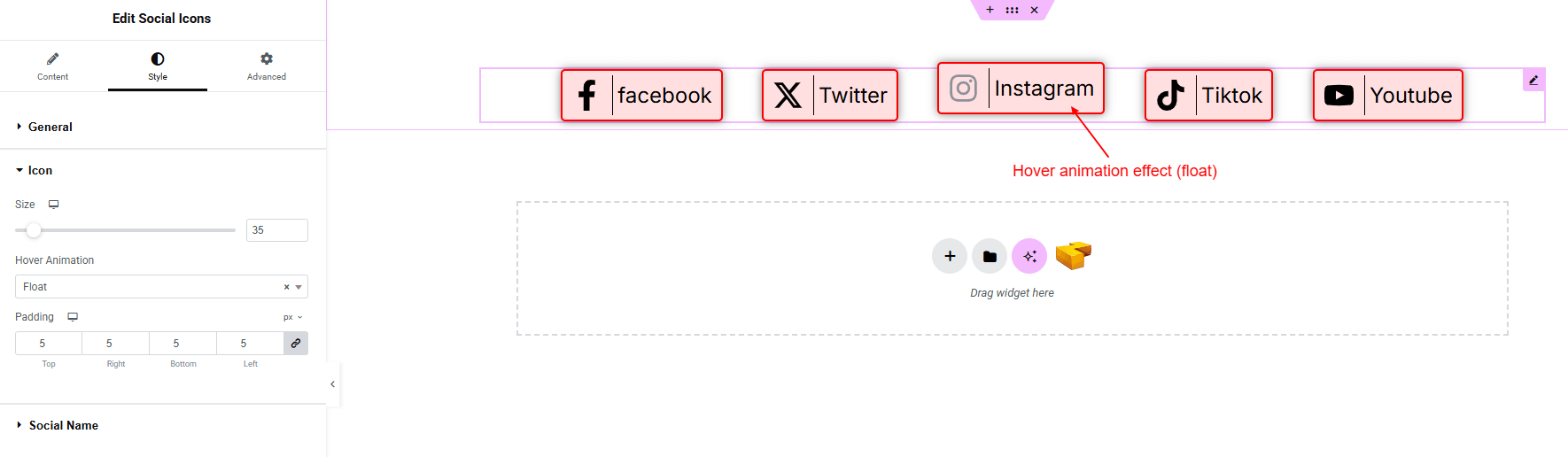 - Hover Animation : Choose an animation style when the icon is hovered.