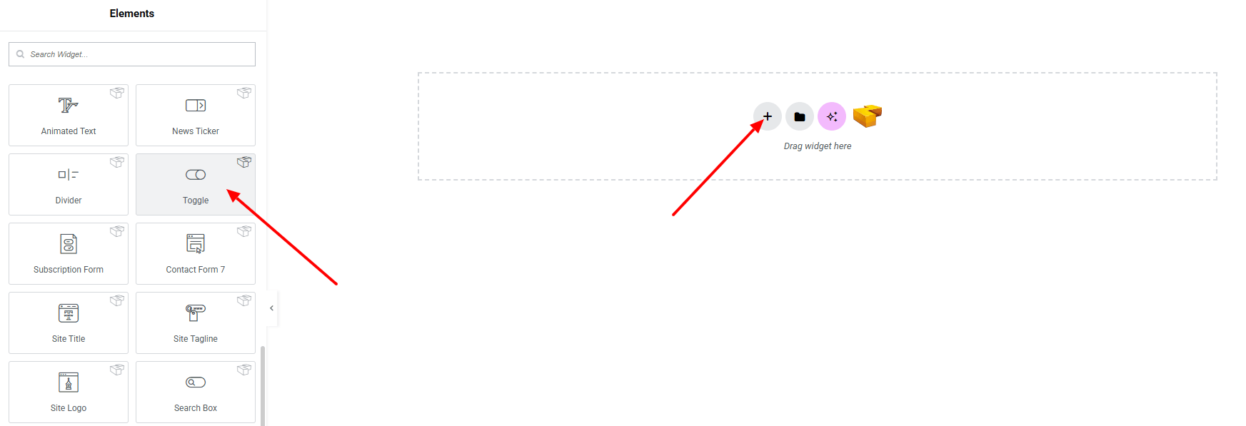 From the left panel, search or choose the Toggle of Zyre Addon and simply drag it into your desired section.