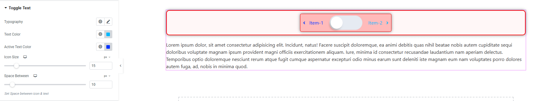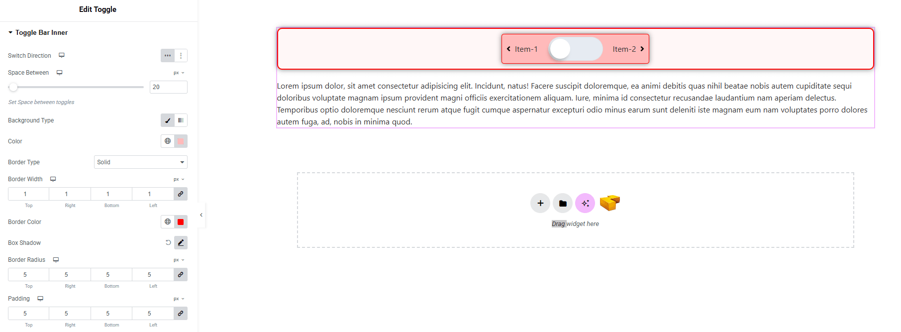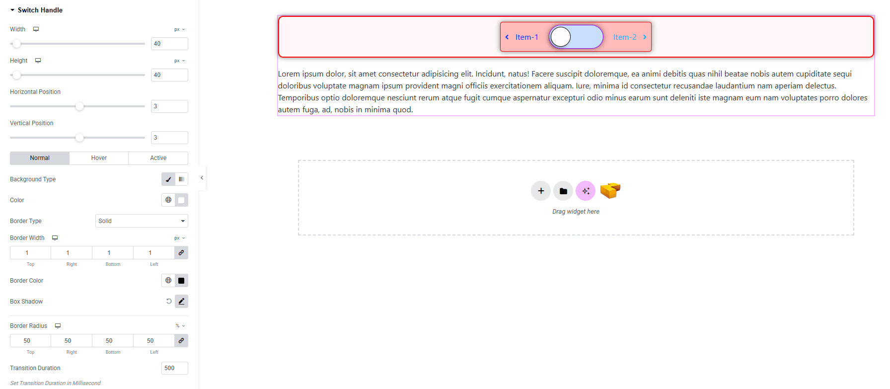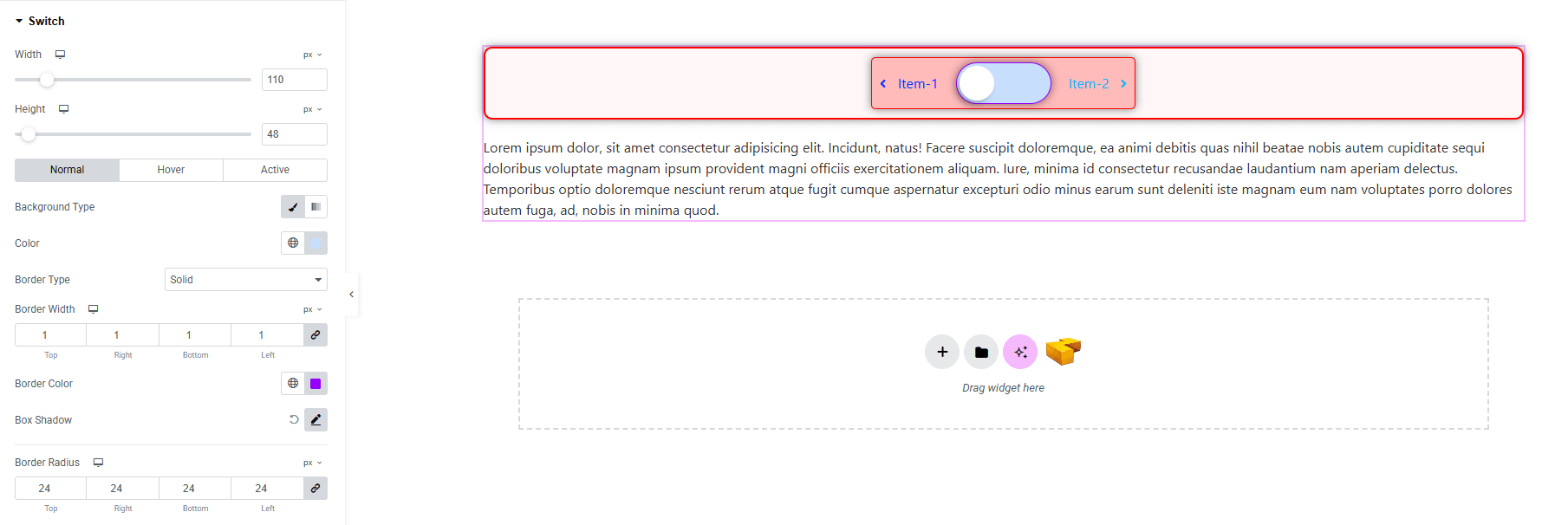 • Box Shadow : Apply drop shadow effect around the toggle bar.