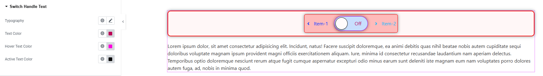 • Show text above the switcher : Enable active, inactive text shown above the switcher button